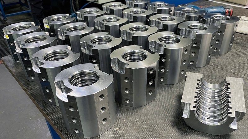 Das Fertigungsspektrum reicht von Bauteilen für Hydraulische Steuerungen, wie Ventilgehäuse, Anschlußplatten, Verschraubungen, Nippel und Muffen, sowie komplett montierte Ventile über mechanische Bauteile für die Elektronik im Bergbau, Lager- und Antriebgehäuse, bis zur Bearbeitung von Aluprofilen für den Fensterbau.