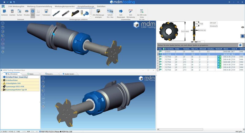 Mit MDM-Tooling steht Ihnen eine Werkzeugmanagement-Lösung zur Verfügung, die selbst komplexeste Werkzeugbaugruppen dank des integrierten 3D-Tooldesigners aus Einzelkomponenten ganz einfach erstellen kann.